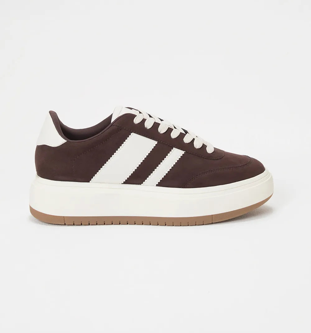 Tenis en suede con lineas en contraste